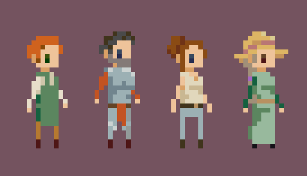 This update completely reworked that, and NPCs have a lot more going for them now. Let me start by introducing you to the first 4 NPCs available in the game. Left to right we have Finn, Rowan, Poppy, and Eloise.