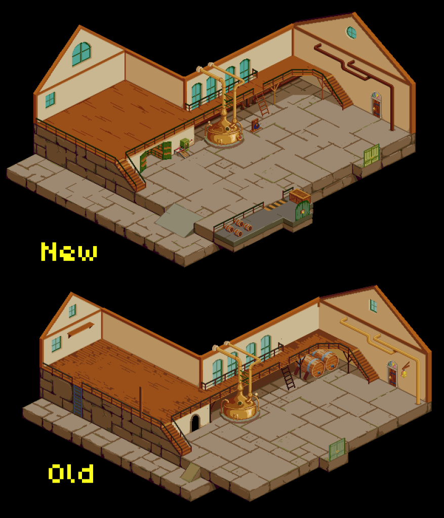 I’ve re-scoped Flask & Barrel to make finishing the game easier. Scope creep was affecting the main focus in recent updates, shifting from brewing to adventuring. From now on, the game world will center on the town, rather than a large world. There will be more emphasis on establishing consistent ingredient supply lines within the town, and processing them into what you need. Near-term updates will concentrate on the brewing and shop-keeping systems to really get the core game-play moving.